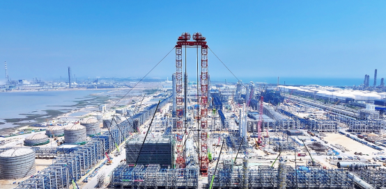 “为建优龙头装置,我们将乙烯塔的保冷材料由泡沫玻璃改为弹性体,施工更简单,效率更高,21天便完成了乙烯塔的保冷工作;通过精细调度,10天内连续完成4台千吨级以上大型设备的安装任务。”王吉余表示,项目锚定2026年元旦前实现乙烯装置分离单元机械中交的任务目标。